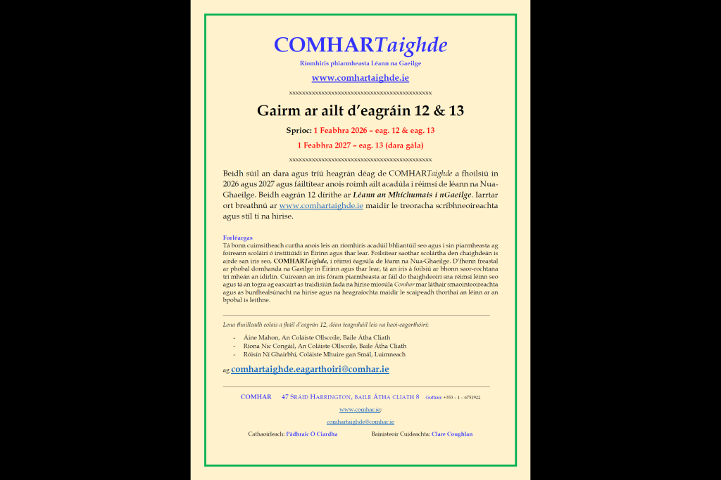 Ba mhaith le Bord Stiúrtha COMHAR buíochas a ghabháil leis na heagarthóirí ar Chéim 2 den togra seo COMHARTaighde: Caomhín Mac Giolla Léith, Ríona Nic Congáil agus Peadar Ó Muircheartaigh, a bhfuil a seal chúig bliana anois istigh. Gaisce a rinneadh le cúig eagrán anuas – ardchaighdeán na hirise a dheimhniú agus leithne sa bhreis […]