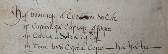 B’fhéidir gur chuir gáirsiúlacht an rainn seo isteach ar O’Rahilly. Má chuir, is cosúil gur bhain an rann gáire as scríobhaí na lámhscríbhinne, óir bhreac sé na focail ‘ha-ha-ha’ lena ais. Díol spéise, go deimhin, gur mar chnuasach d’ábhar grinn a dhéanann an scríobhaí féin cur síos ar an lámhscríbhinn (ARÉ 24 B 28) ar an leathanach teidil: ‘Cómhchrinnudhe Eachturidh agus disgán deaghsgéal noch do thrachtus ar mhoran do nithibh greanamhura ar na ccur a ccló maille hEamonn Turriogh’.