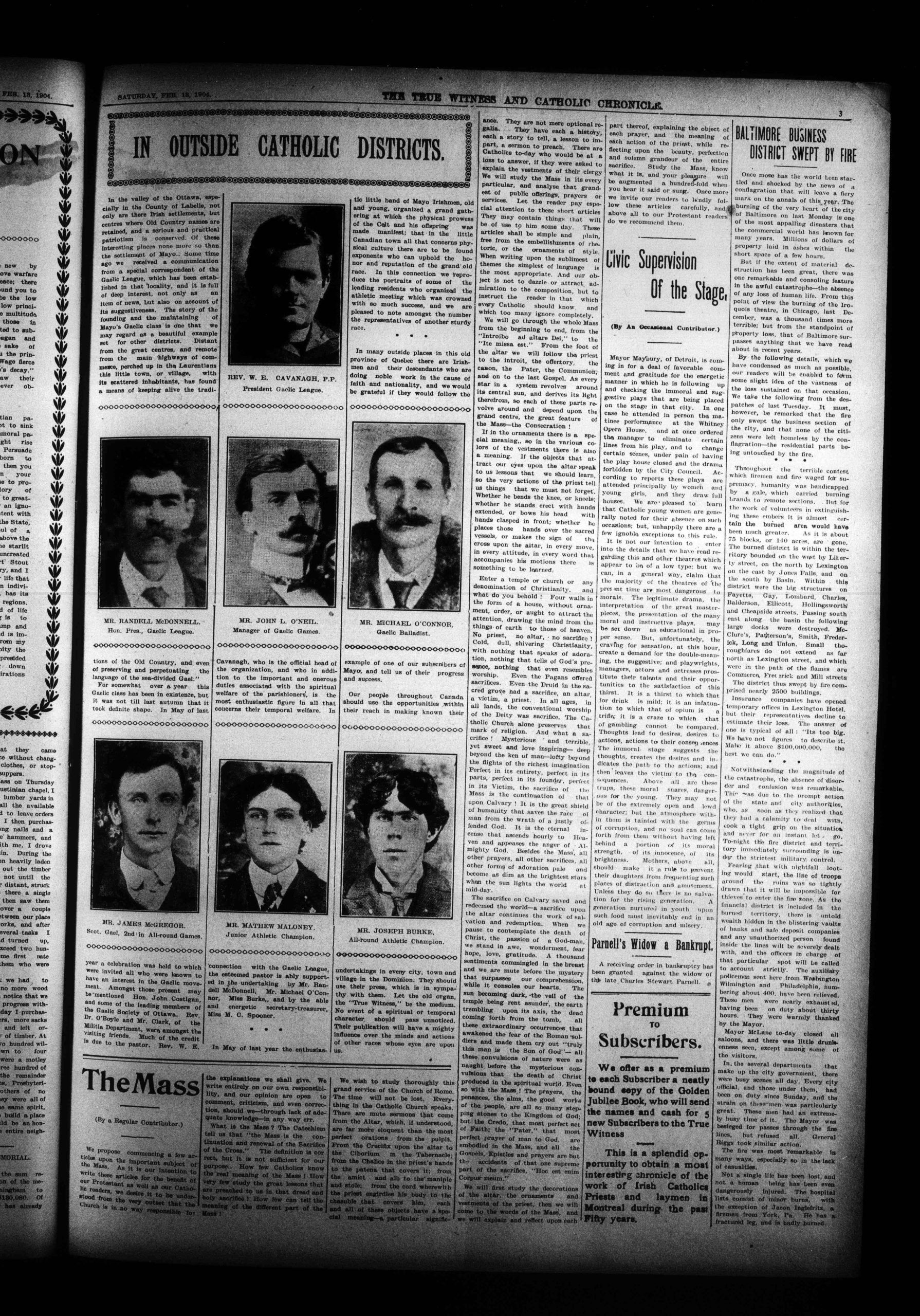 ‘In outside Catholic districts’. In: The True Witness and Catholic Chronicle (Montréal), 13 Feabhra 1904: 3.