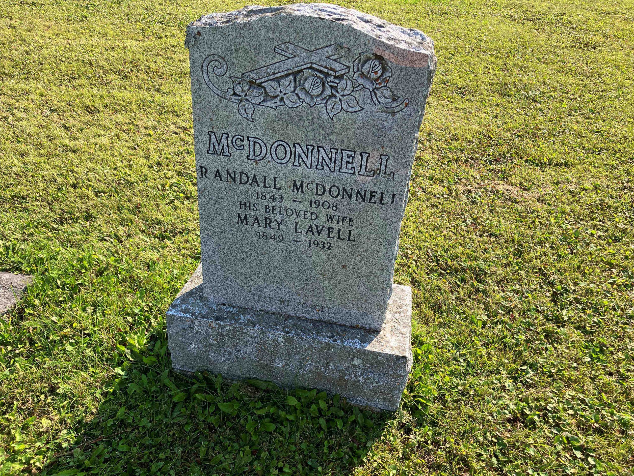 Leac uaighe Randall McDonnell agus Mary Lavell, St. Malachy Cemetery, Mayo, Québec